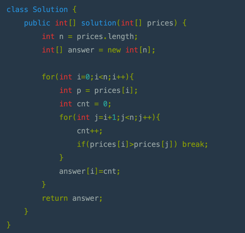 1) 해당 i 번째 인덱스의 값을 price 라는 변수에 저장한다. 그리고 cnt 라는 변수를 0 으로 초기화한다.
