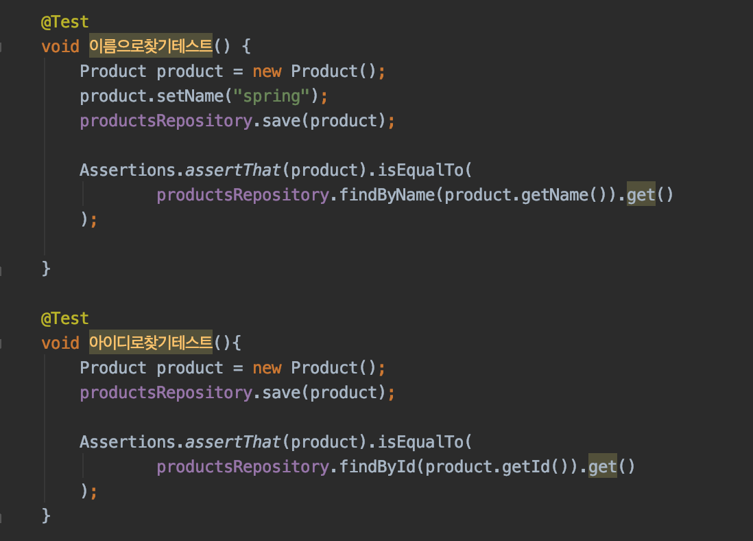 다음으로는 ProductsRepository 를 구현한 클래스를 작성해본다.