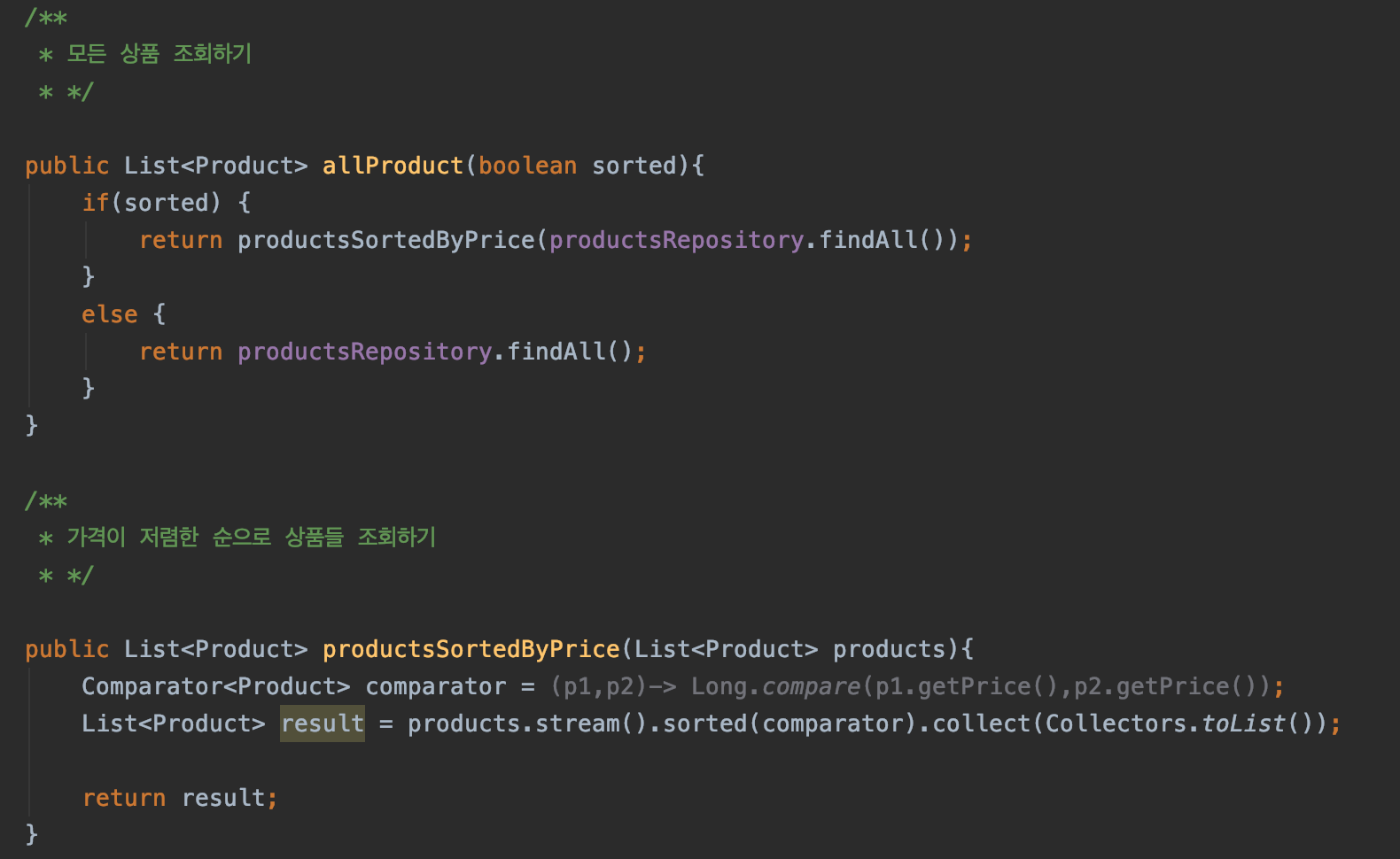 2)상품조회 (가격 기준으로 정렬 유무를 선택할 수 있음)