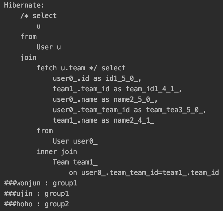 System.out.println("###"+u.getName()+" : "+u.getTeam().getName());