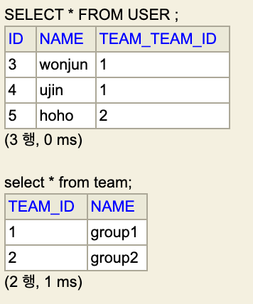 영속성 컨텍스트는 깨끗하게 비워져있는 상태라고 가정한다. 아래의 데이터베이스 상황에서 쿼리를 날린다면??